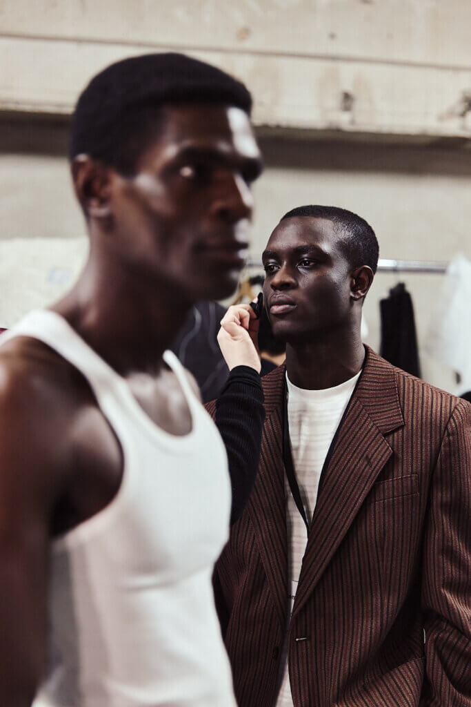 “Germany is one of the biggest consumers of fast fashion,” founder and designer Bobby Kolade explains after the show. “Presenting ‘RETURN TO SENDER’ is about intensifying the conversations about responsibilities and returning things to the place they originate from.”