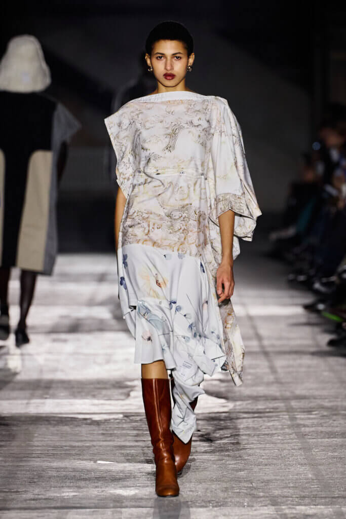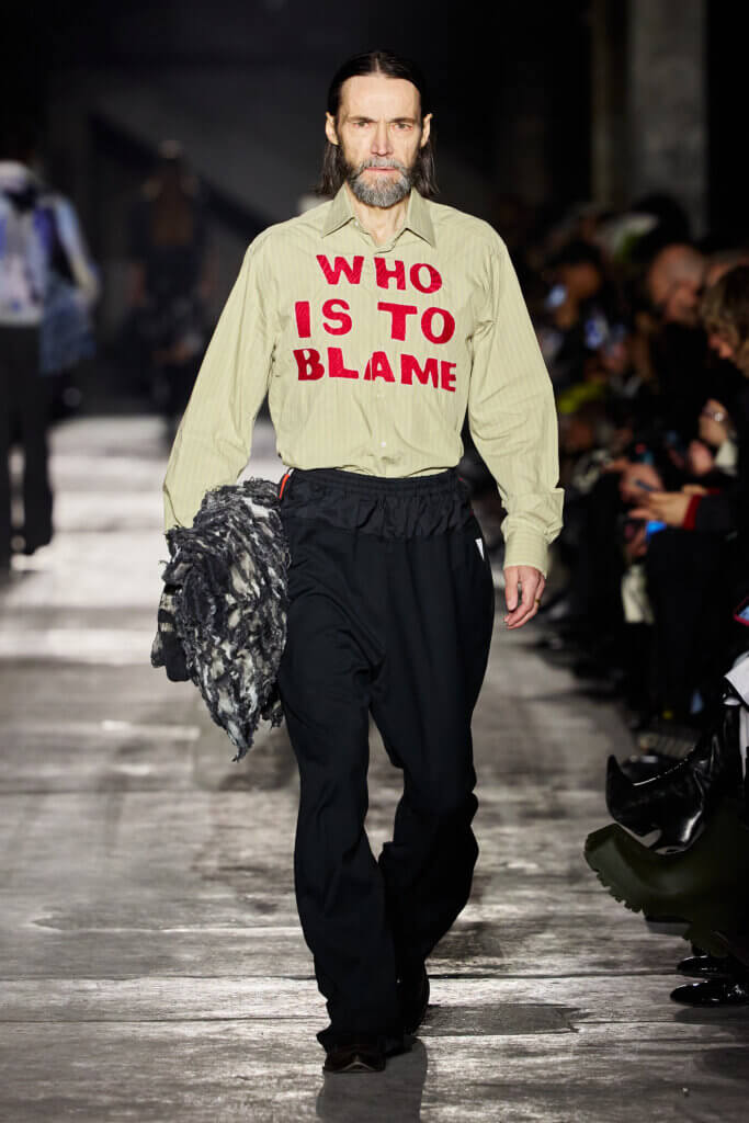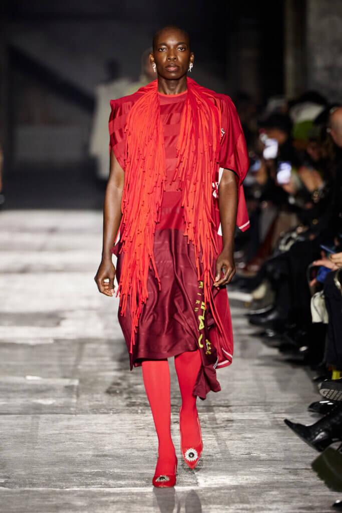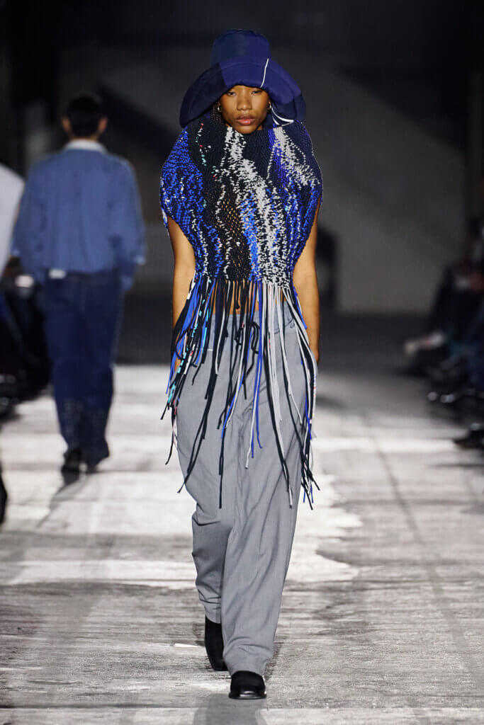 Set inside the towering halls of Berlin’s Kraftwerk, the show opens with a soundscape of bustling streets, honking cars, and roaring engines, setting the tone for an act of reclaiming agency: the creation of a space where discarded garments are discovered, questioned, and reinterpreted.
