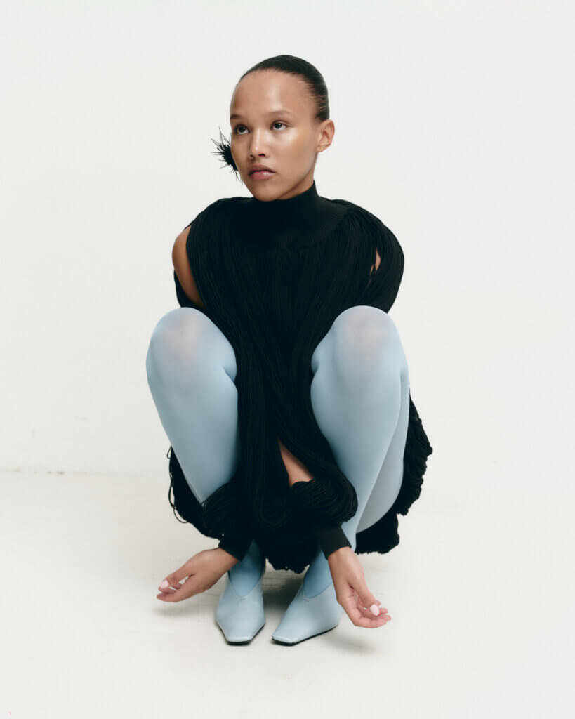 Top & Skirt: ALAÏA, Earring: Bygoldiie, Tights: Falke, Shoes: Jil Sander