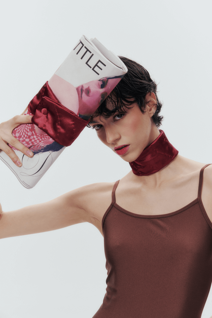 In a boundless magazine format inspired by newspaper formats, Cult Form crafted belts that double as chokers to transform the loose print pages into a fashionable clutch. Using the brand’s traditional yorgan crafting technique, the belts are comfortable, colourful, and multifunctional. The accessory is available in 2 reds: burgundy and scarlet.