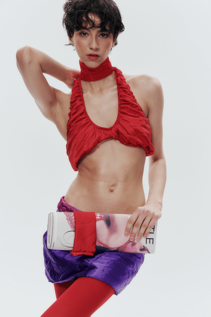 Matching with the magazine clutch, Cult Form and TITLE came together for a fashion editorial to highlight the classic feel of the collaboration. “For the ’70s-inspired cover series, we created a piece that resembles a newspaper one could carry as a clutch, combined with a hand-crafted quilted (yorgan) element made by our artisans.” With croquet handcrafted tops, skirts, and Cult Form’s staple leggings, the Destiny issue comes to life in a playful yet fashion-forward series, reminiscent of vintage magazine cover shoots.